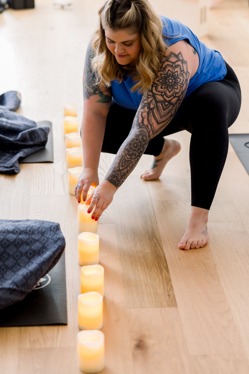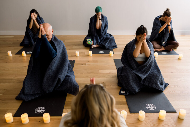 Our first concept centered on Jess as a teacher, so during our session, she led a group yoga class and a yoga teacher training, and I also photographed her giving one-on-one adjustments to individual students.